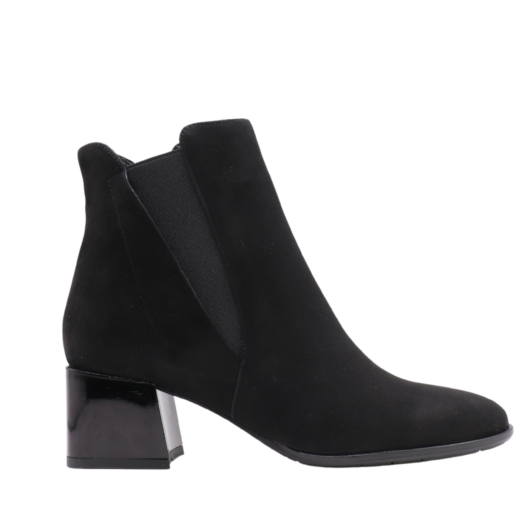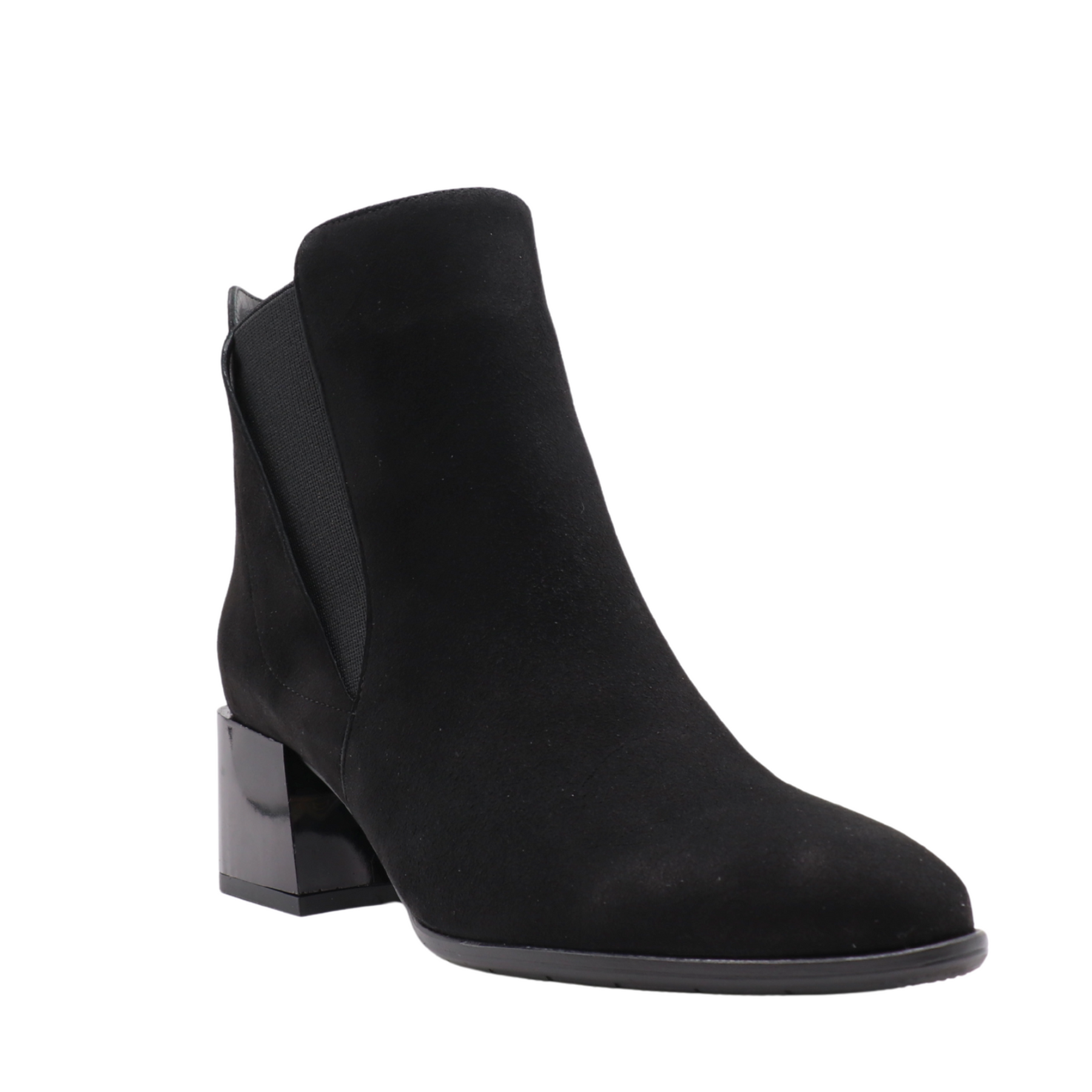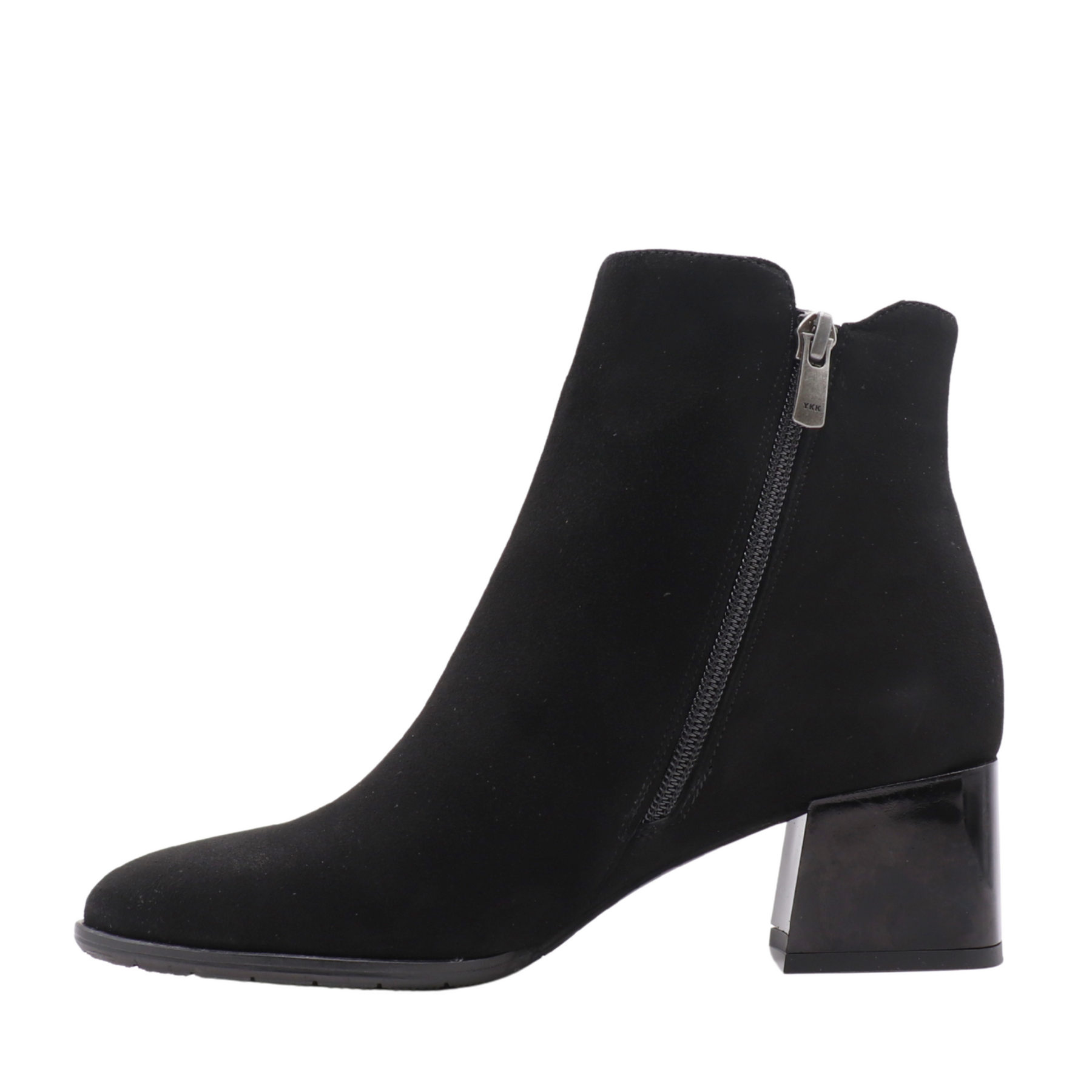 Sophie de boots Apropo combine sobriety and refinement. Made from genuine suede, they feature elegant lines and a shiny block heel for a modern, feminine touch. Their side zipper ensures quick slip-on and perfect fit, for everyday comfort.