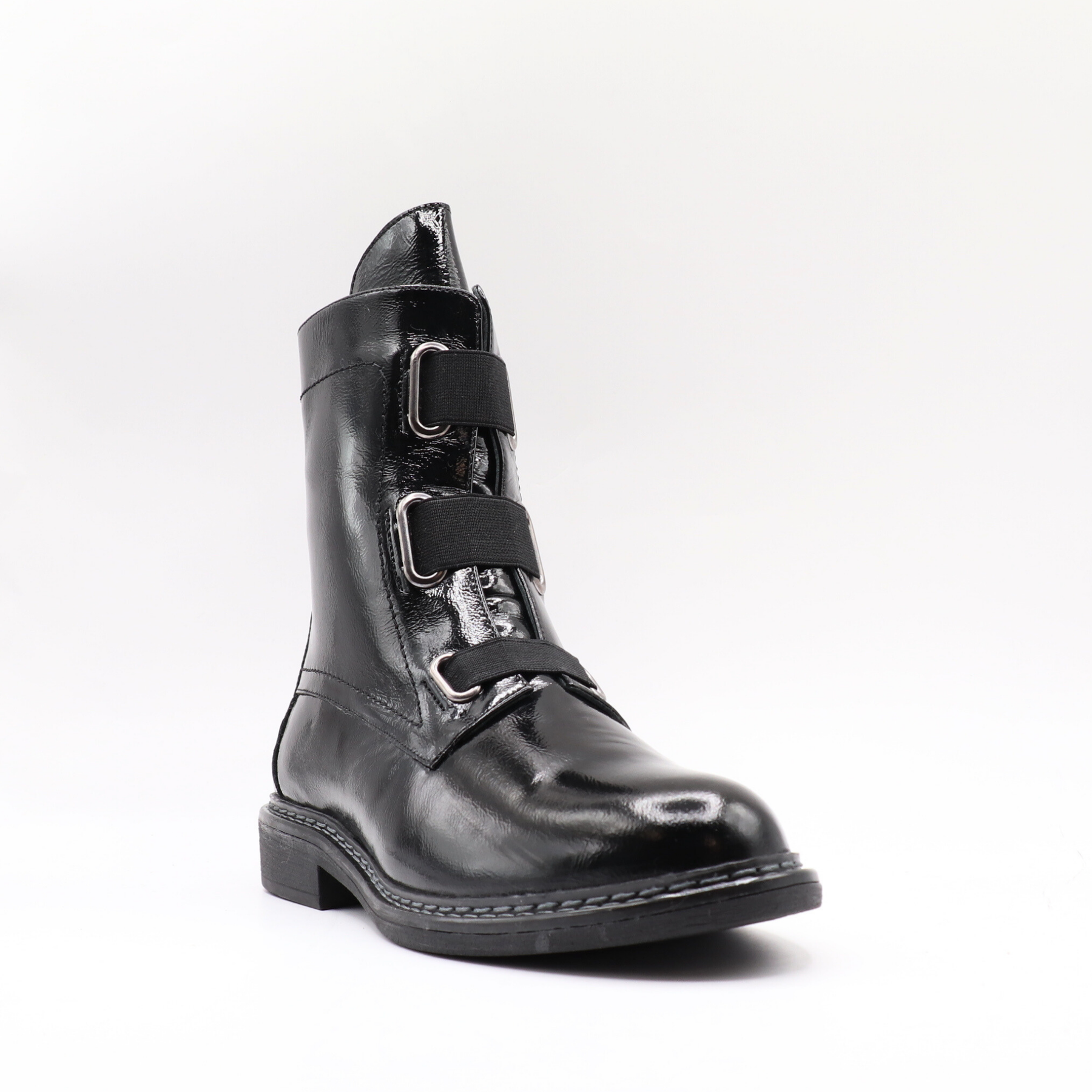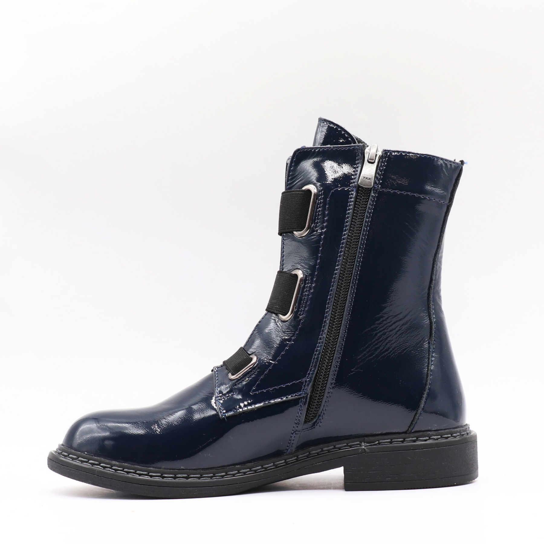 Original and modern,Apropo 's Cab boot seduces with its patent leather and wide elasticated front straps that add a unique touch to the design. Made in Europe, they combine comfort and style with a sturdy sole and side zipper for easy slip-on. Available in timeless black or deep navy blue, they're the perfect everyday style statement.