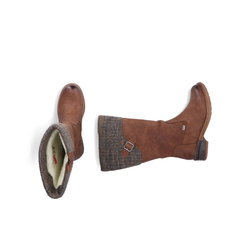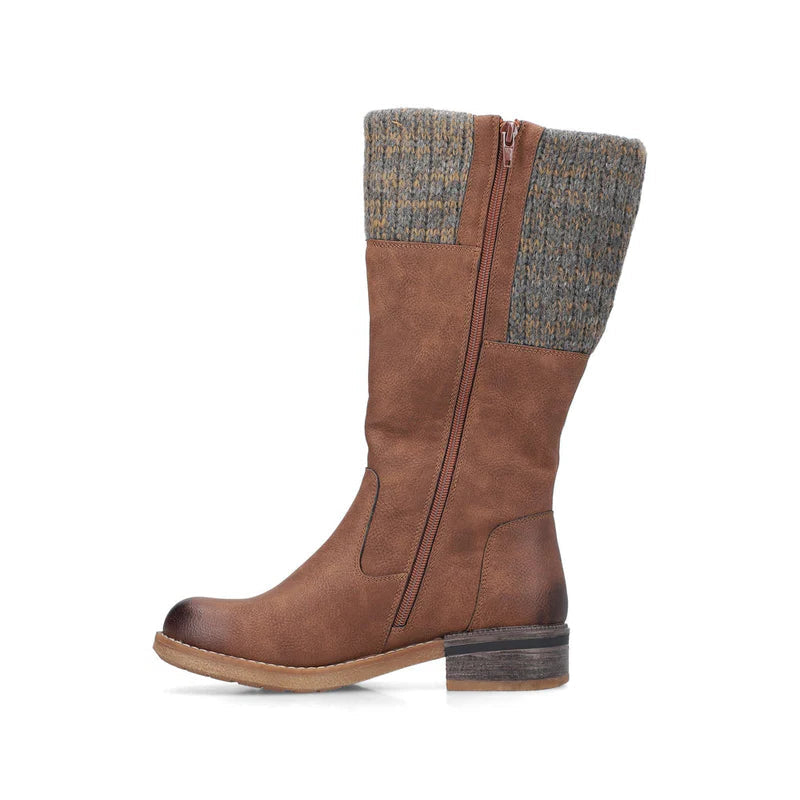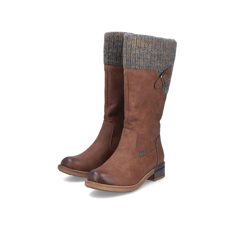 Cold days, warm feet! You'll never want to take off these Rieker tall boots in dark brown. The zipper makes them easy to slip on and off. The knitted collar on the upper adds a touch of style. The grippy sole ensures stability. RiekerTEX technology and a warm lining guarantee optimum comfort in all weathers. Trendy well-being from Rieker!