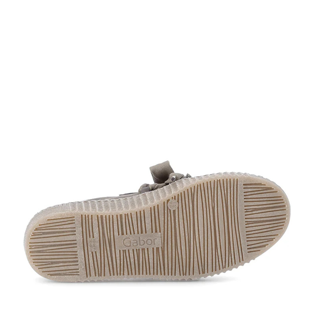 A perfect blend of style and comfort, this beige leather low shoe from Gabor is an everyday essential. Its premium leather upper, made from environmentally-friendly tanning, is combined with a leather lining for breathable comfort. Thanks to its Best Fitting last, it offers an enlarged forefoot landing surface, ideal for long-lasting well-being. The removable insole, partly made from recycled materials, rests on a 3.5 cm flat sole with a modern look. The wide elastic lace ensures a quick fit and a casual-chic look.