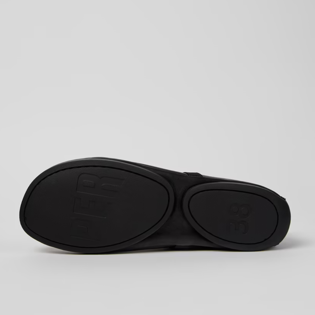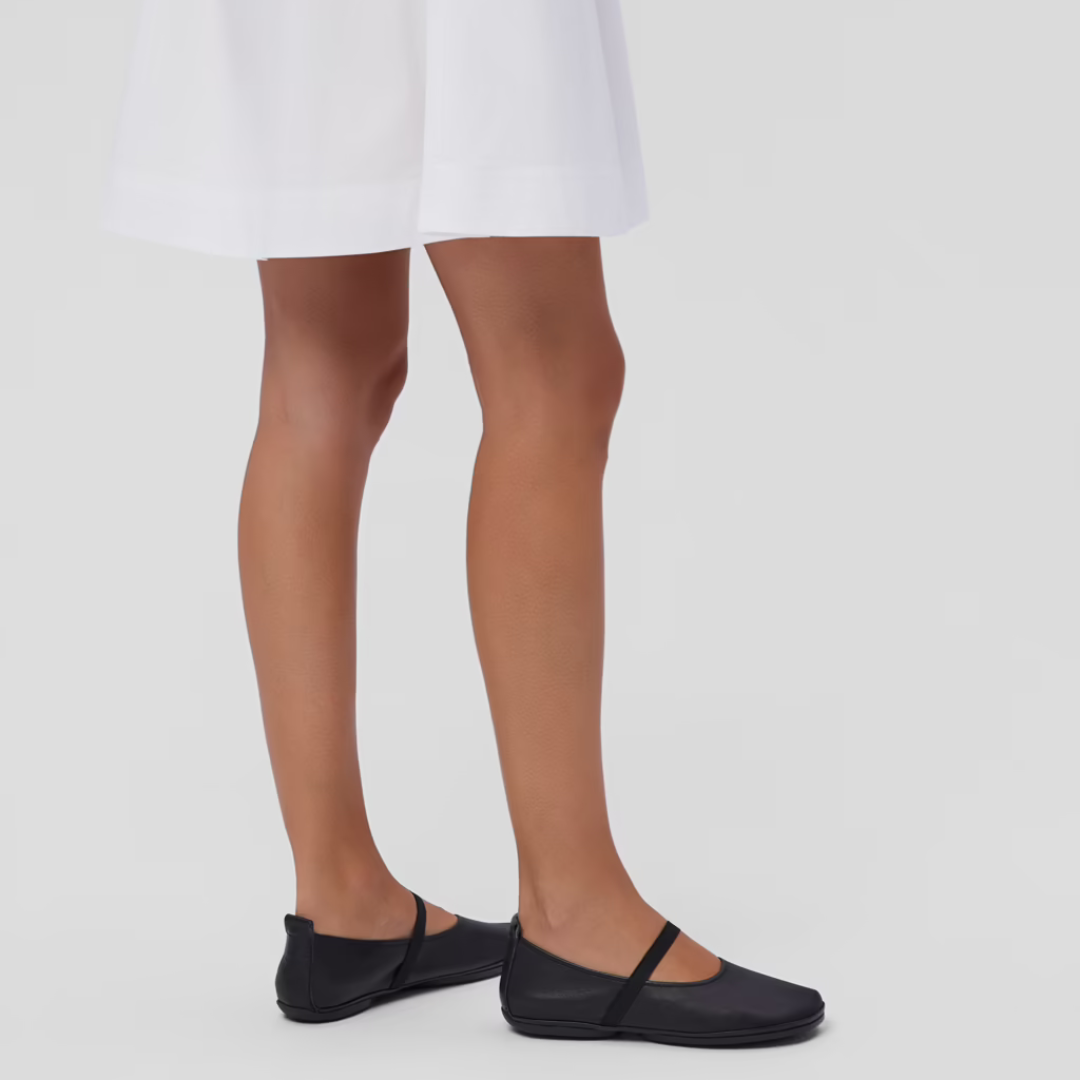 Elegant and comfortable, these black cowhide ballerinas are designed to accompany your day with style and lightness. First launched in 2005, the Right Nina model combines the suppleness of a ballet slipper with the durability of a rubber sole, ideal for city life. Their design combines natural and recycled materials for lasting comfort and timeless appeal.