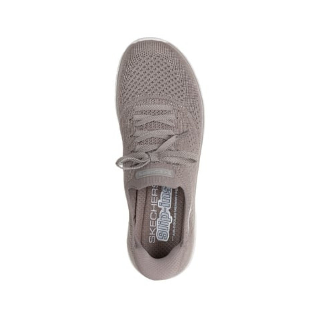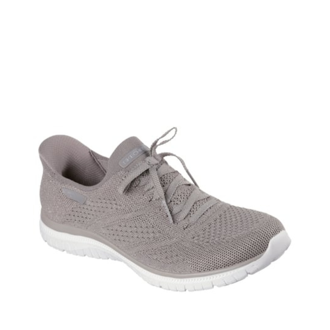 Opt for effortless comfort with the Skechers Hands Free Slip-ins®: Virtue - Flawless shoe. Featuring our Heel Pillow™ cushioning, this vegan shoe with fixed laces includes a Stretch Fit® technical knit upper and a cushioned Skechers Air-Cooled Memory Foam™ insole.