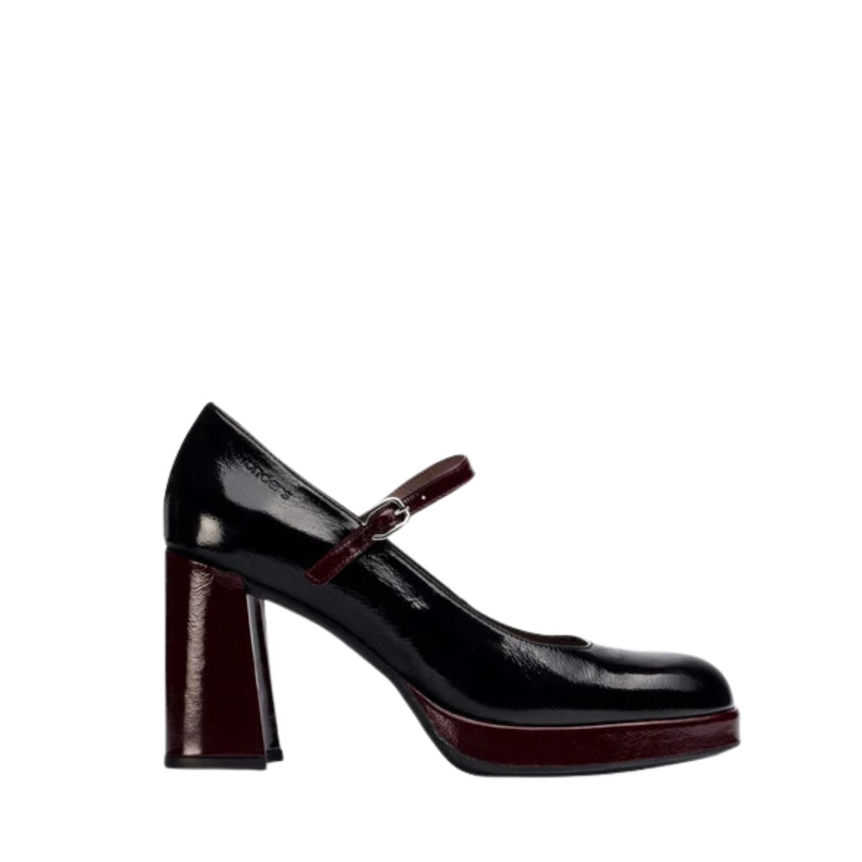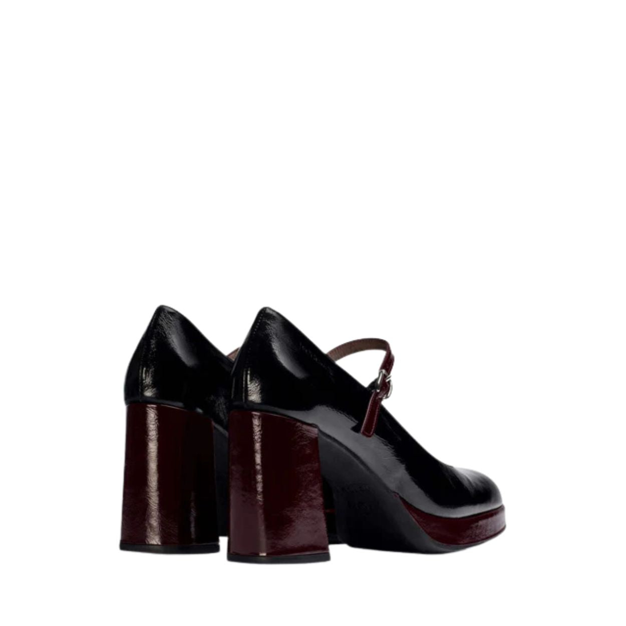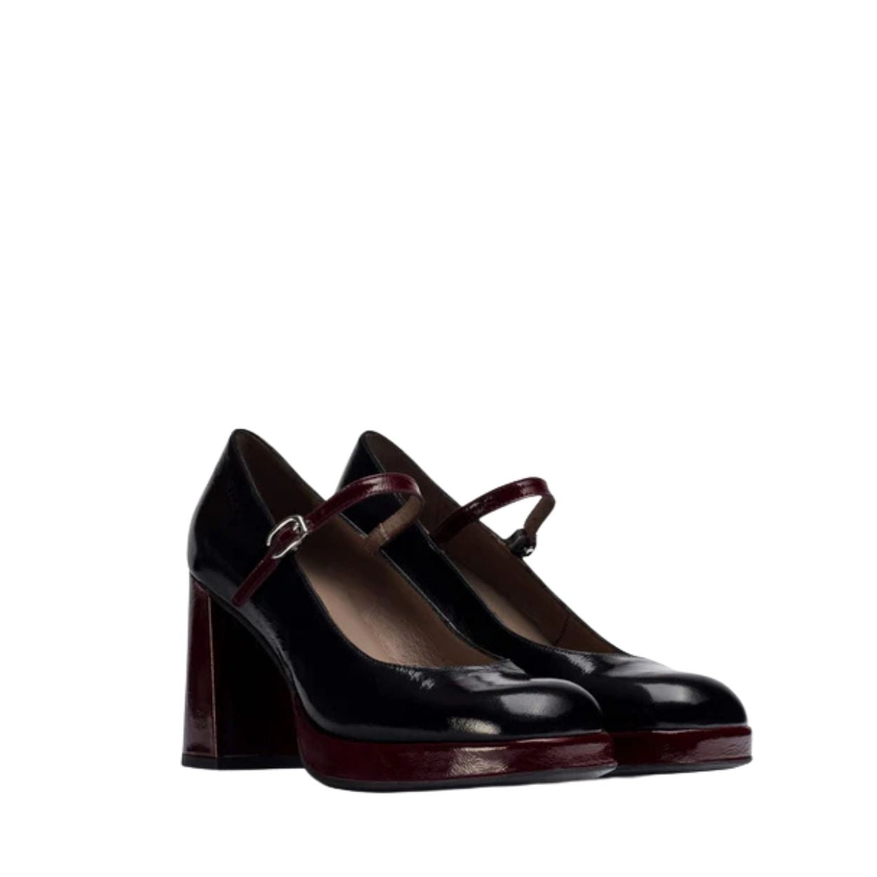 Fall for the H-5941 pumps from WONDERS, a refined model in premium black smooth leather. Their sleek, feminine lines dress the foot with elegance, while their 8 cm burgundy block heel, combined with a 2 cm front platform, ensures a stable, comfortable lift, while elongating the silhouette.