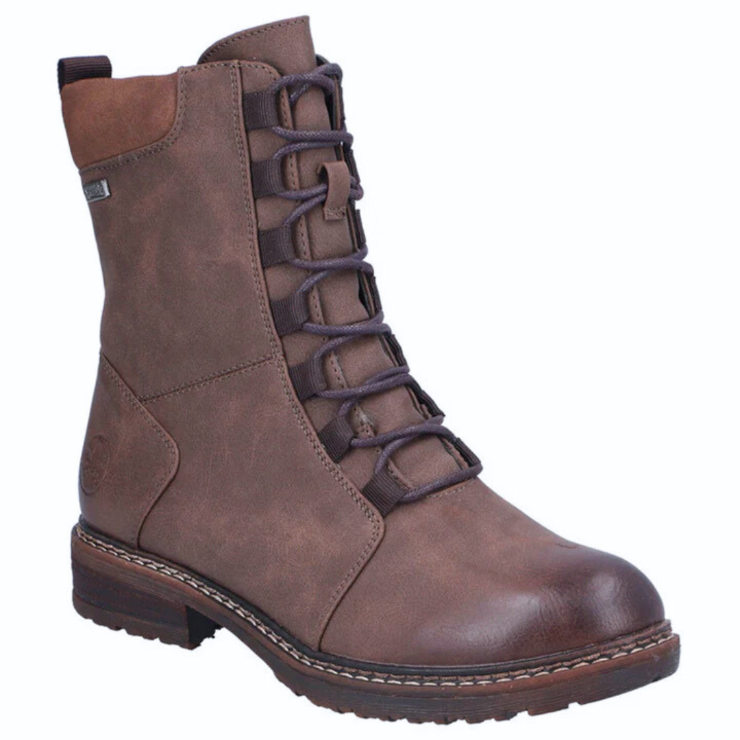 These boots combine style and practicality with front lacing and a side zipper for easy slip-on. Designed with RiekerTex technology, they offer good water resistance, ideal for wet days. Their low block heel and flexible sole provide comfort, stability and a touch of style for everyday wear.
