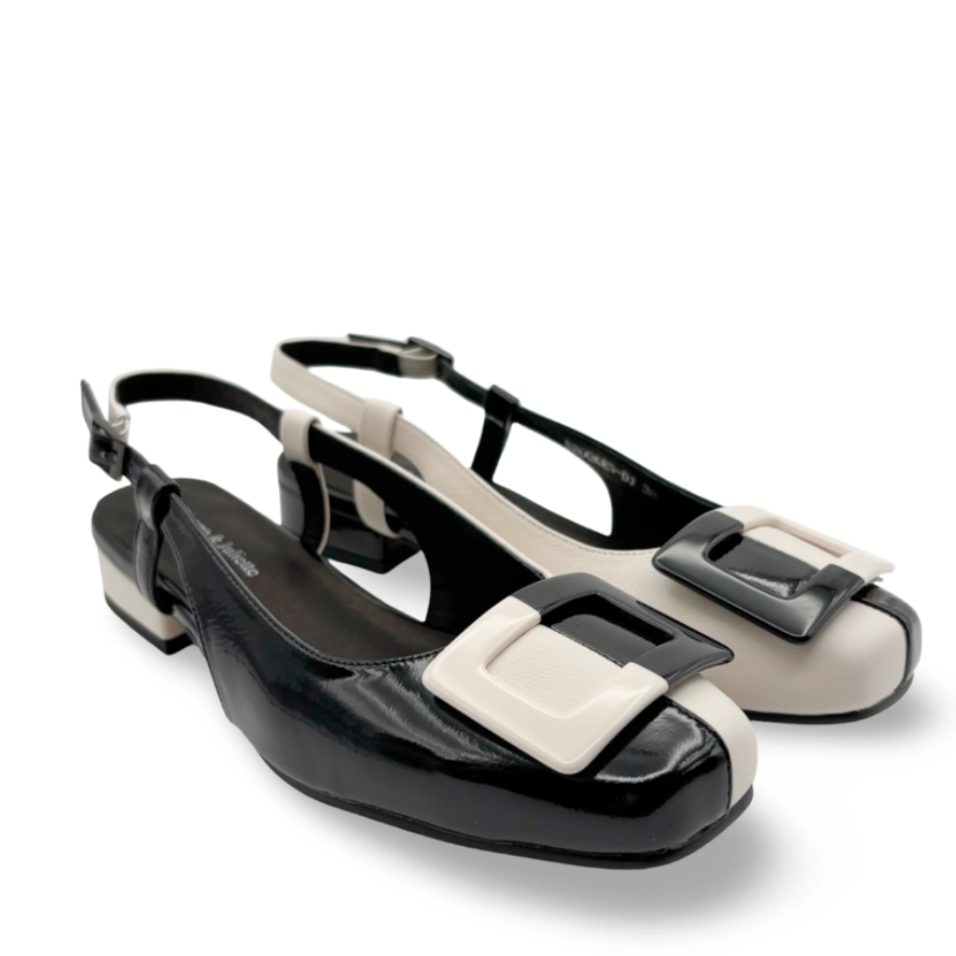 Their trendy square toe and metallic details add a contemporary touch, while the low block heel provides stability and understated elegance. Easy to slip on thanks to their slingback design, the Brookes are ideal for both your professional looks and your nights out.