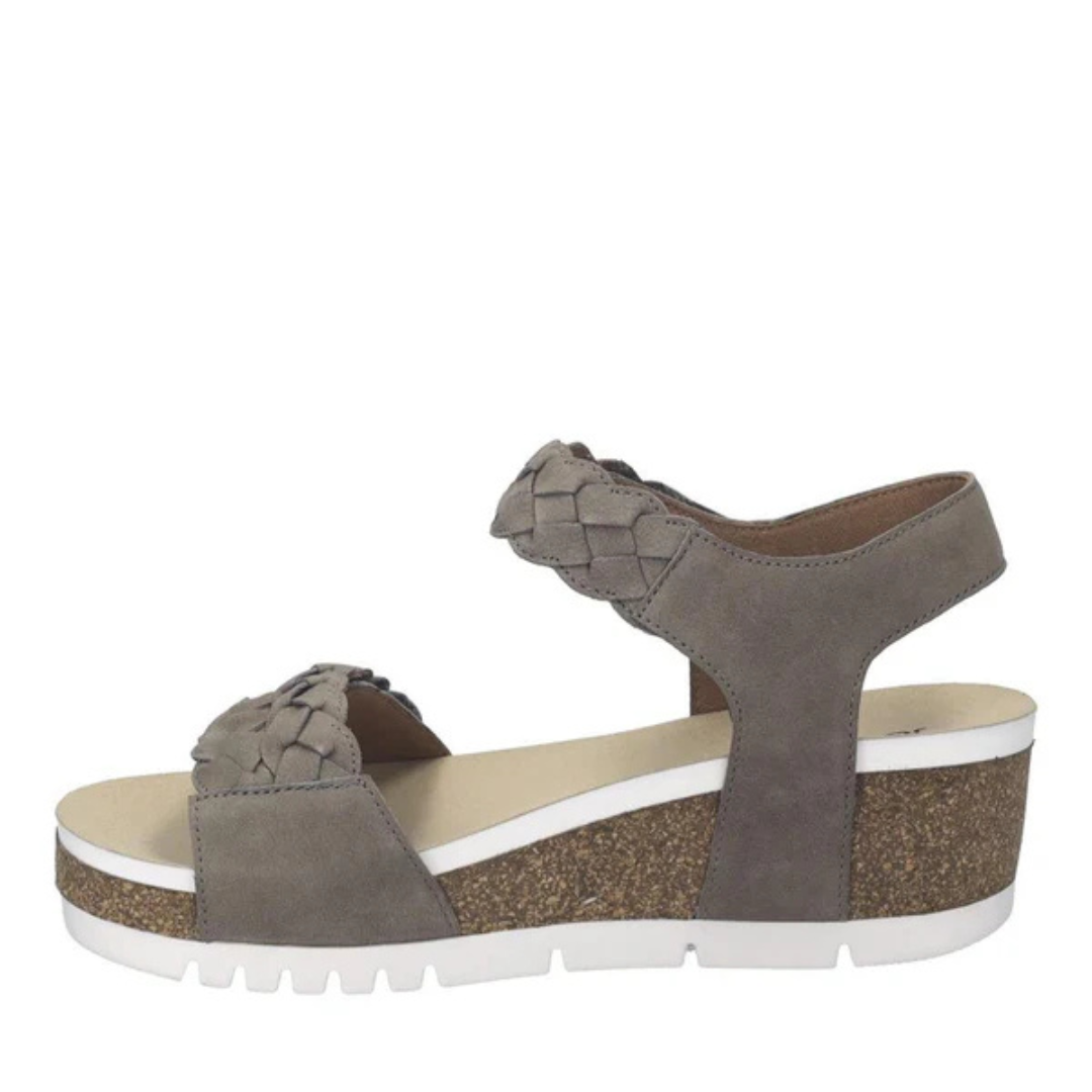 Designed for everyday wear, this updated wedge sandal combines supple nubuck leather with lasting comfort, accompanying you from morning to night with style and lightness.