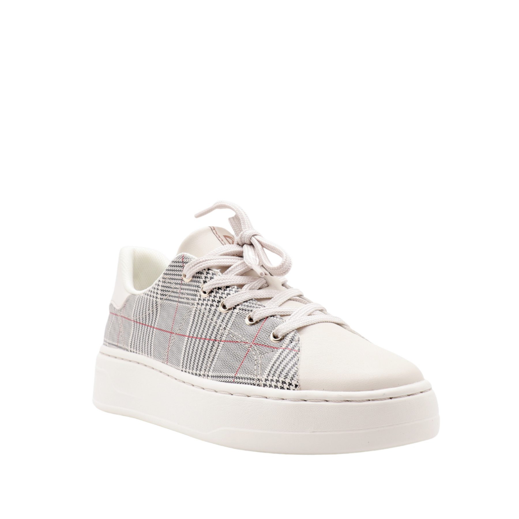 Design: tartan print, laces, white platform sole