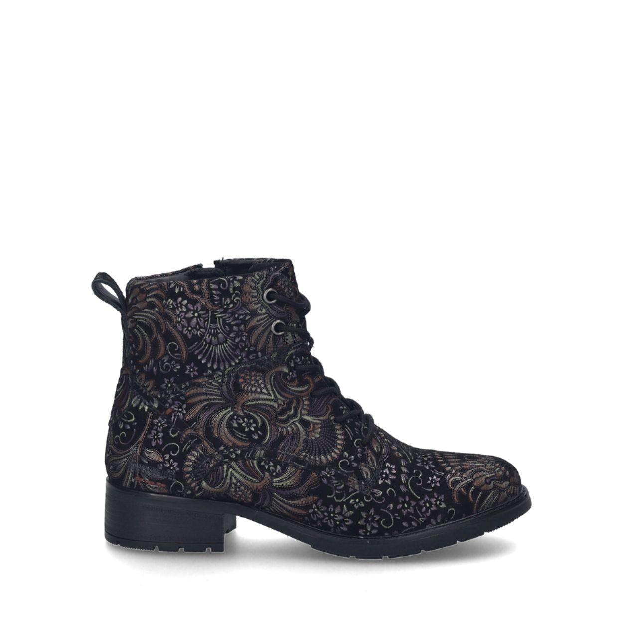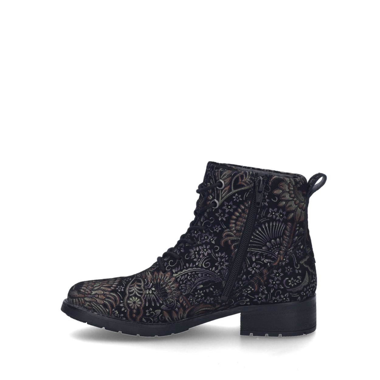 Make Kate 15 booties your new wardrobe essential. Combining unique design and superior comfort, they'll quickly become a staple in your collection. Designed for the modern woman, they feature a vibrant black-multi floral pattern that adds a touch of elegance to any outfit. Go out in style and enjoy the compliments they're sure to elicit.