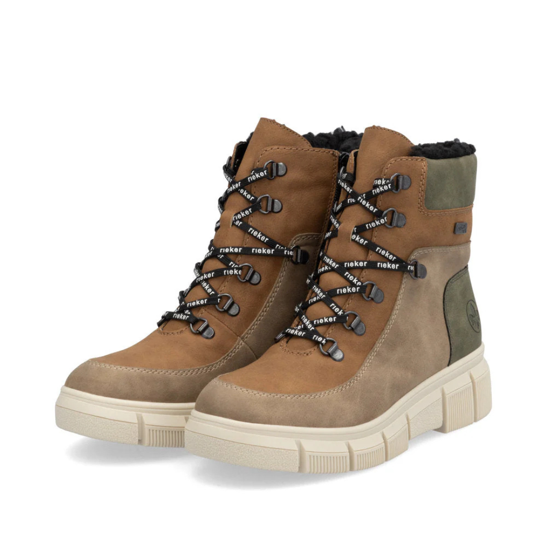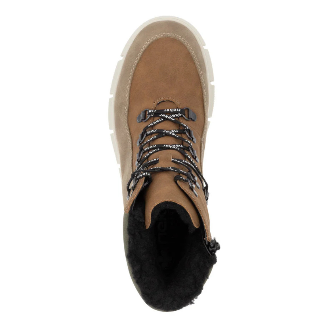 Versatile! These hazelnut-colored Rieker lace-up ankle boots seduce with their classic design and great comfort. Despite the lacing, the shoe closes easily thanks to the zipper. Their grippy sole offers excellent grip for a sure-footed stride. What's more, their narrow E 1/2 fit provides extra support. In wet, cold weather, feet stay dry thanks to the water-repellent surface, while the warm lining offers optimum protection against the cold. Here, the cold goes away without a care in the world.