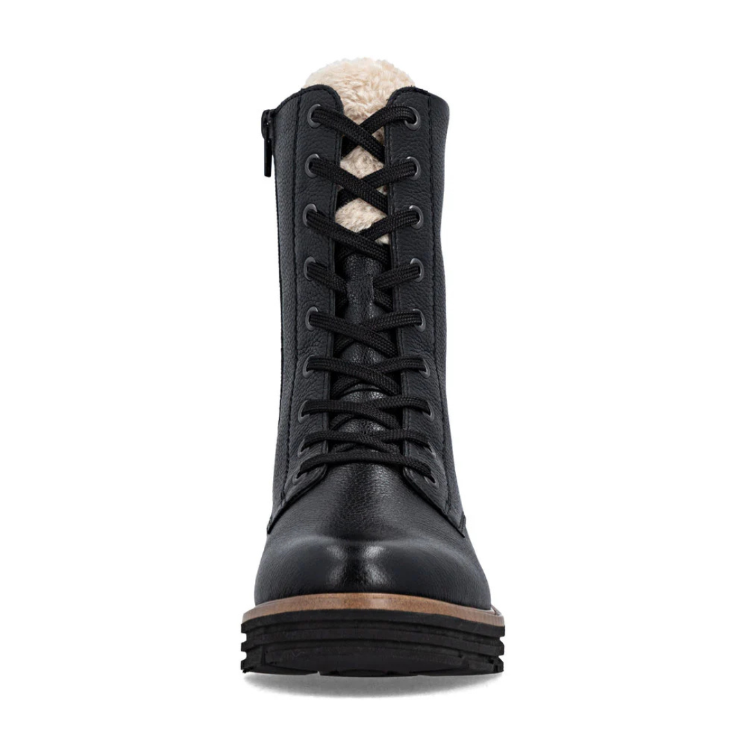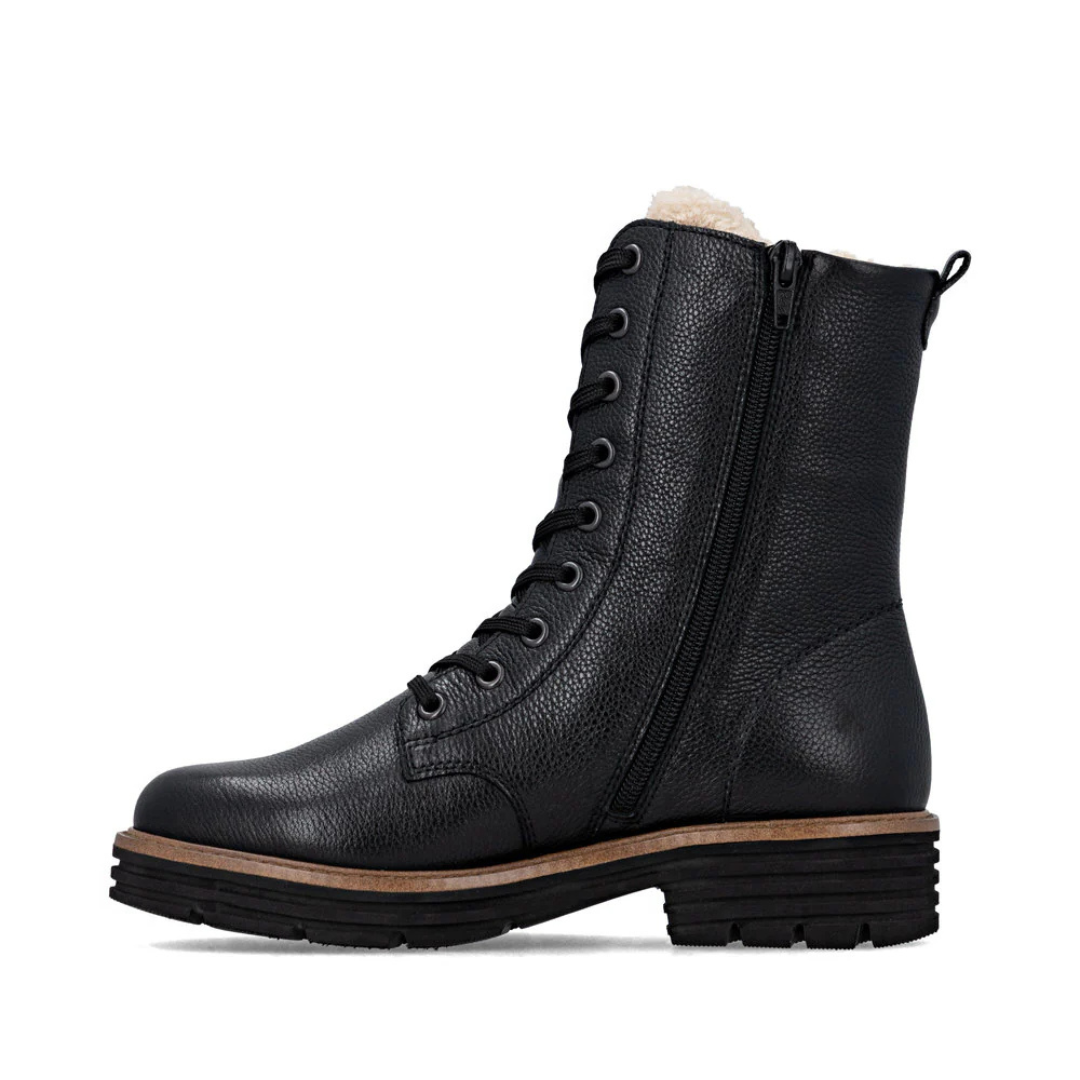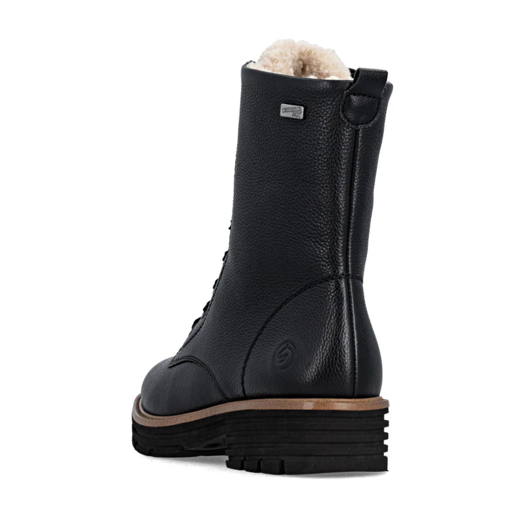 Walk lighter, live more serenely! These black lace-up Remonte ankle boots in smooth leather combine trendy design with optimum comfort. The lacing completes the zipper, guaranteeing optimal support and a perfect fit. Lite 'n Soft technology combines an ultra-light sole with a removable insole. The comfort width offers enough space to keep your feet comfortable, even when worn for long periods. The warm, cozy virgin wool lining keeps your feet warm all day long, and thanks to the remonteTEX membrane, they stay dry! What could be more comfortable?