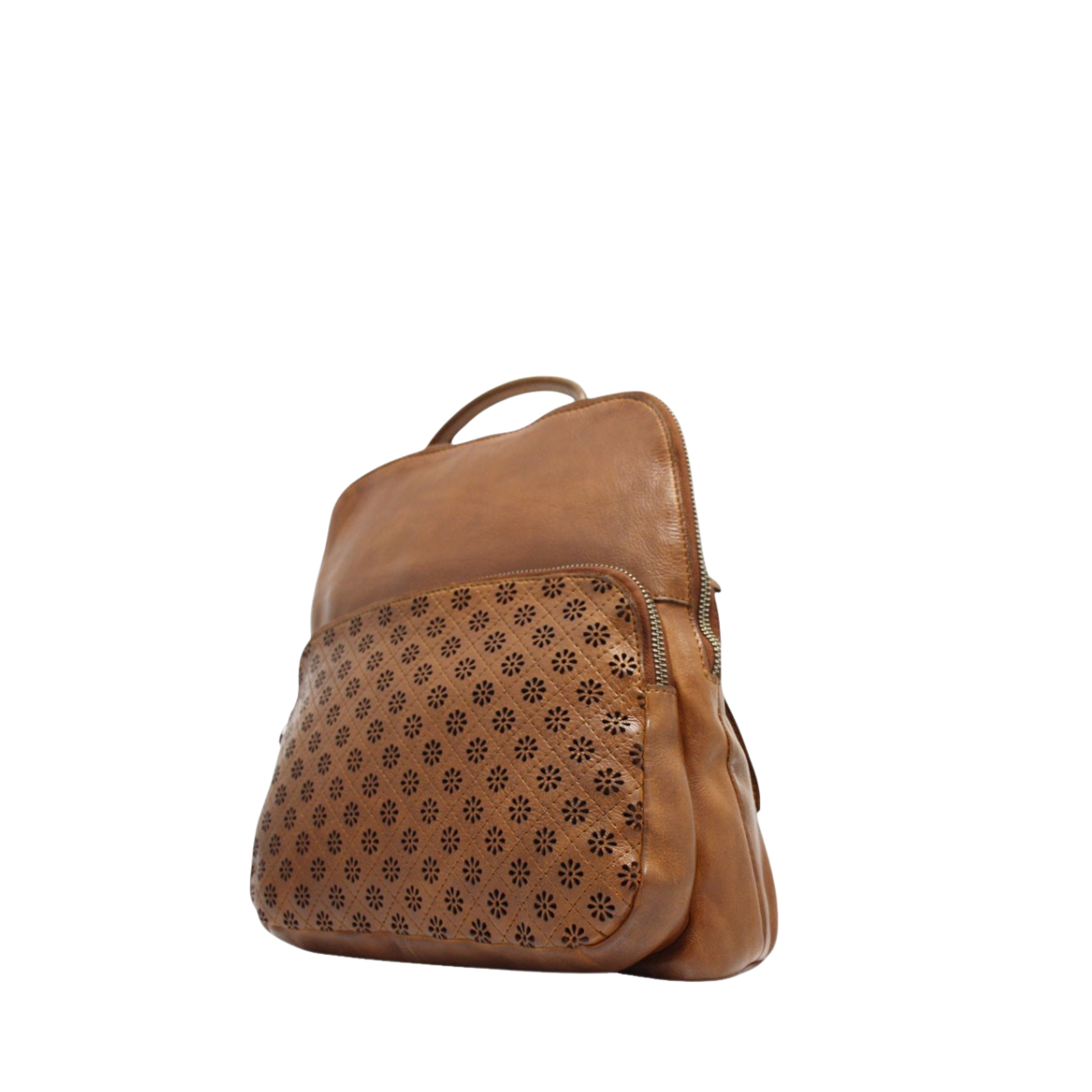 This genuine leather backpack perfectly combines refinement and functionality. Its front, perforated with floral motifs, adds a touch of femininity while remaining sober. Ideal for city life or getaways, it offers comfort and style to all your outfits.