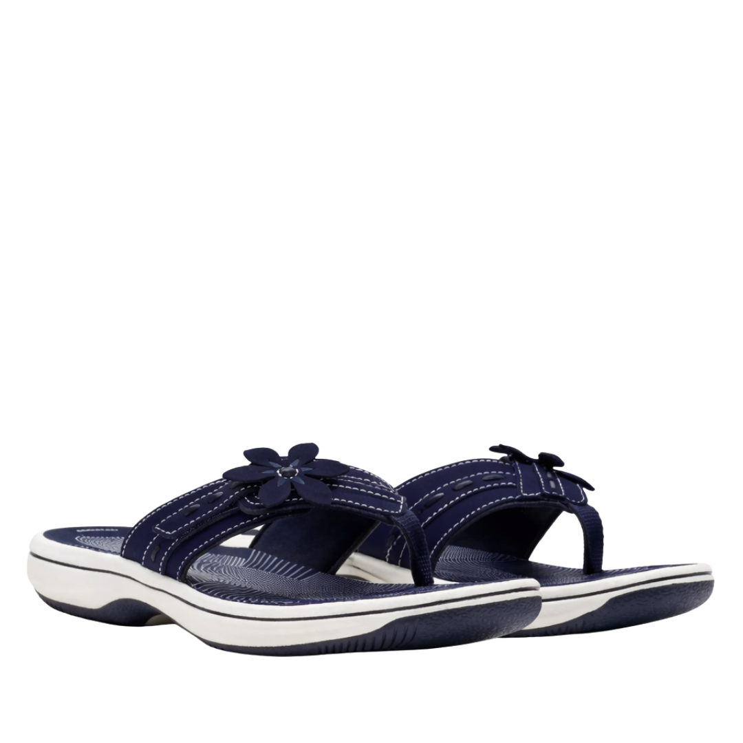 Topped with a pretty floral detail, the Breeze Opal flip-flop is part of our Cloudsteppers collection. So you know that total comfort underfoot is a sure thing. It's designed with a soft denim upper for a smooth feel against the skin, while grippy soles offer secure support and easy stepping.