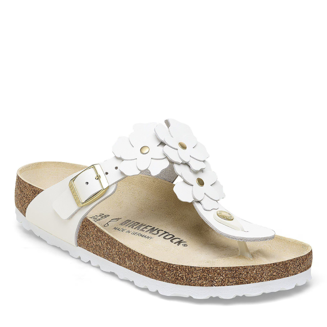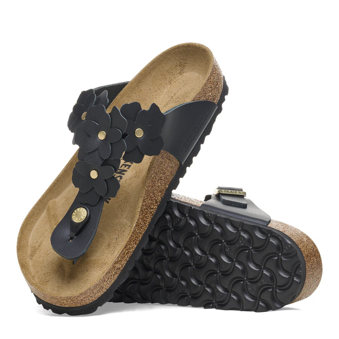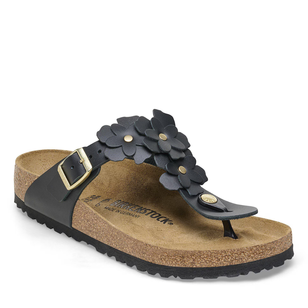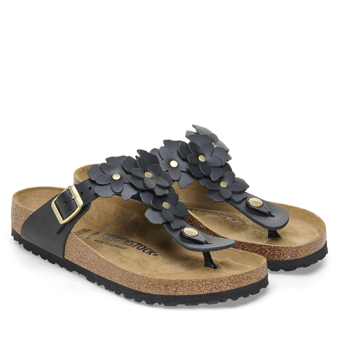 Embellished with flowers, the Gizeh sandal is a true celebration of summer. Accented with gold details, its exceptionally soft leather upper showcases a delicate and sophisticated floral design.