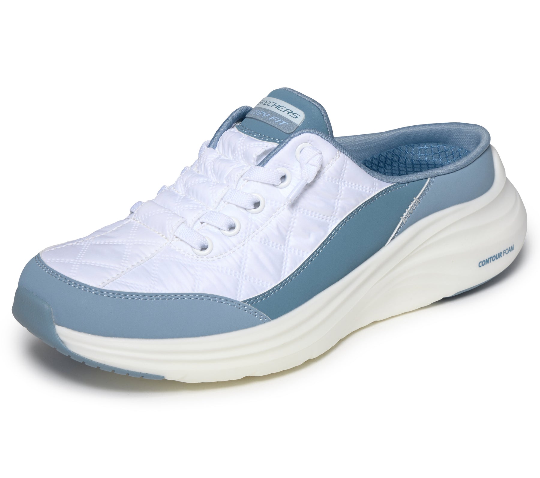 The Skechers Contour Foam™ - Cozy Fit™ Sweet Embrace is the ideal hybrid shoe for those seeking the freedom of an open back without sacrificing the performance of a sports shoe. Its mule-style design allows you to slip it on in an instant, while its upper, combining durable leather and quilted mesh, offers a sophisticated look and optimal breathability.