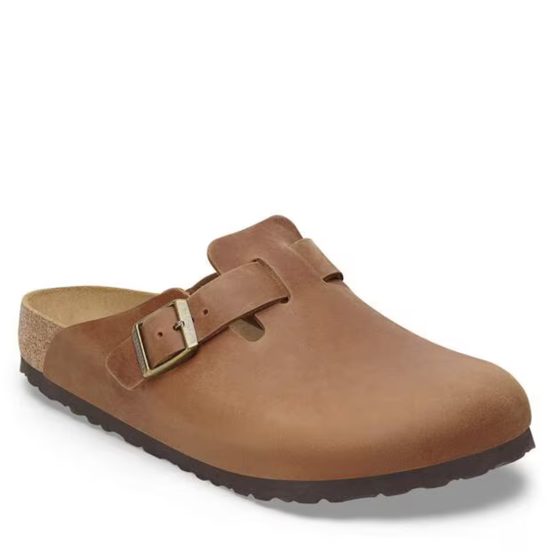 Our most iconic clog is crafted here from heritage leather that lives up to its legendary status. The BIRKENSTOCK Boston, made from oiled leather, develops a unique patina over time, making each pair authentic and one-of-a-kind.