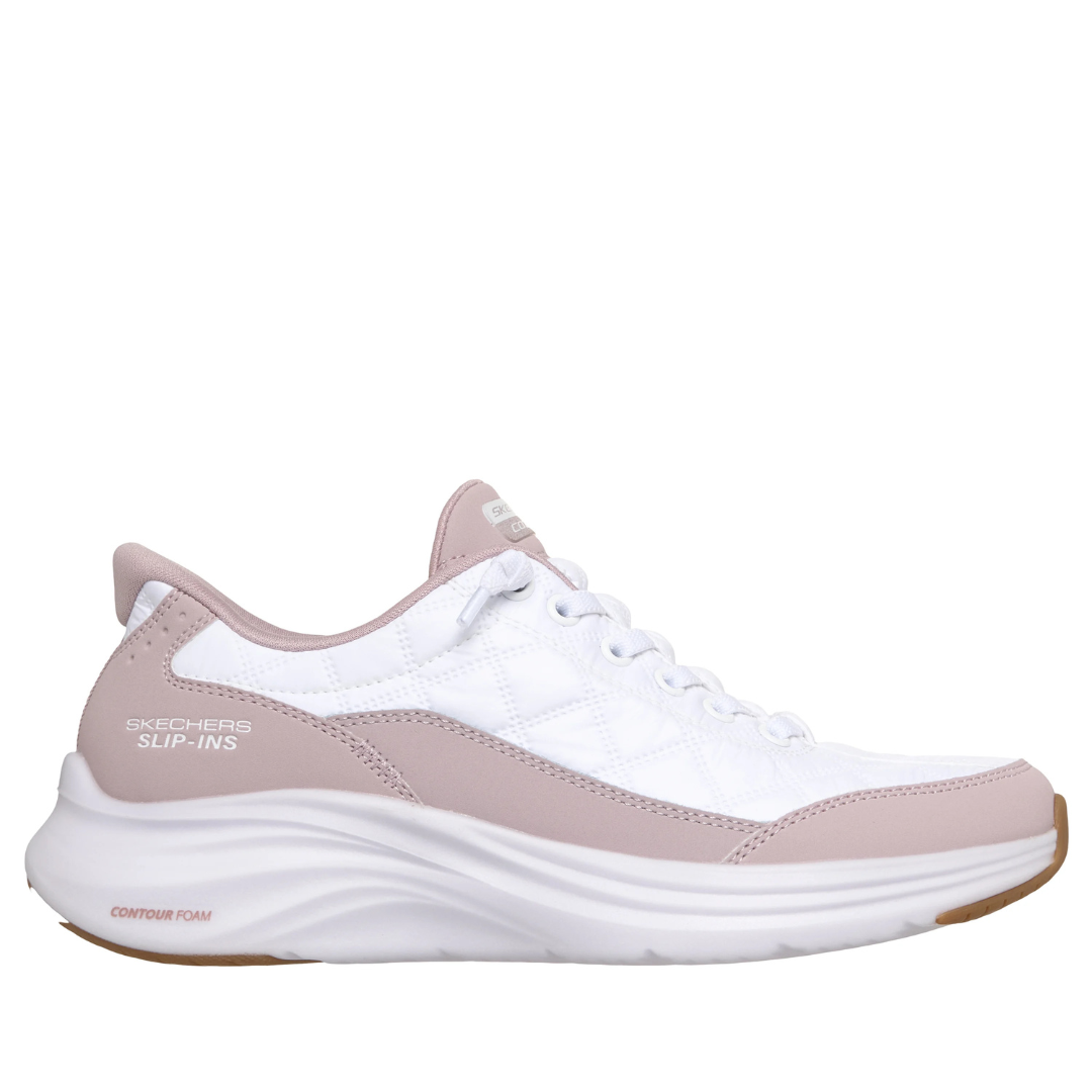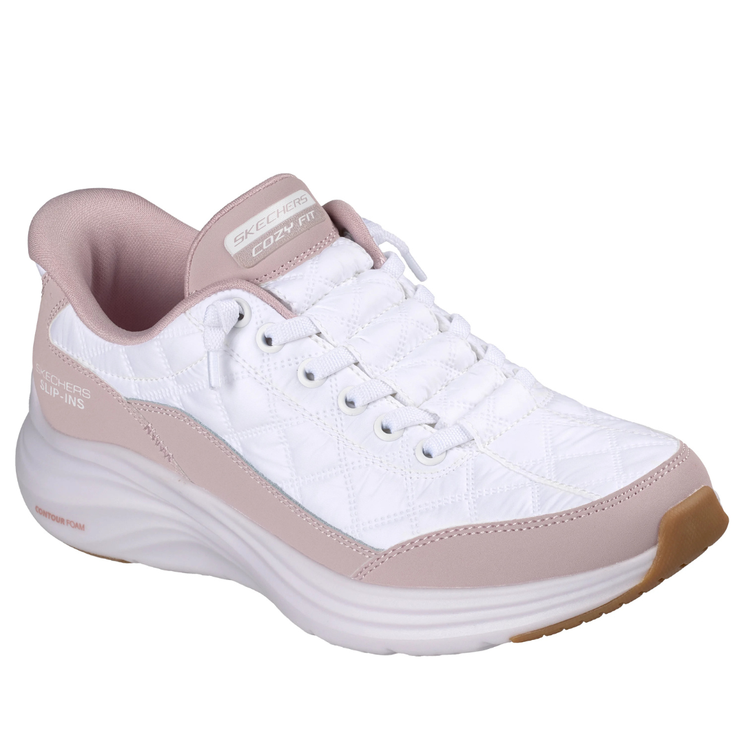 Wrap your feet in versatile comfort with the Skechers Hands Free Slip-ins®: Contour Foam™ - Cozy Fit™ shoe. Featuring our Heel Pillow™ cushioning, this slip-on shoe with stretch laces includes a Cozy Fit™ padded upper with synthetic overlays, Contour Foam™ midsole cushioning, and our signature Skechers Air-Cooled Memory Foam™ cushioned insole.