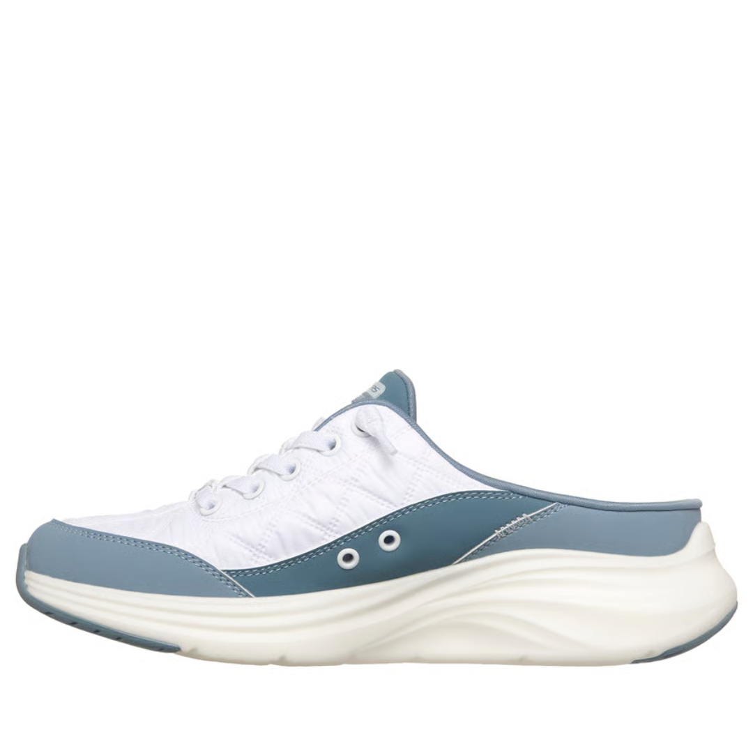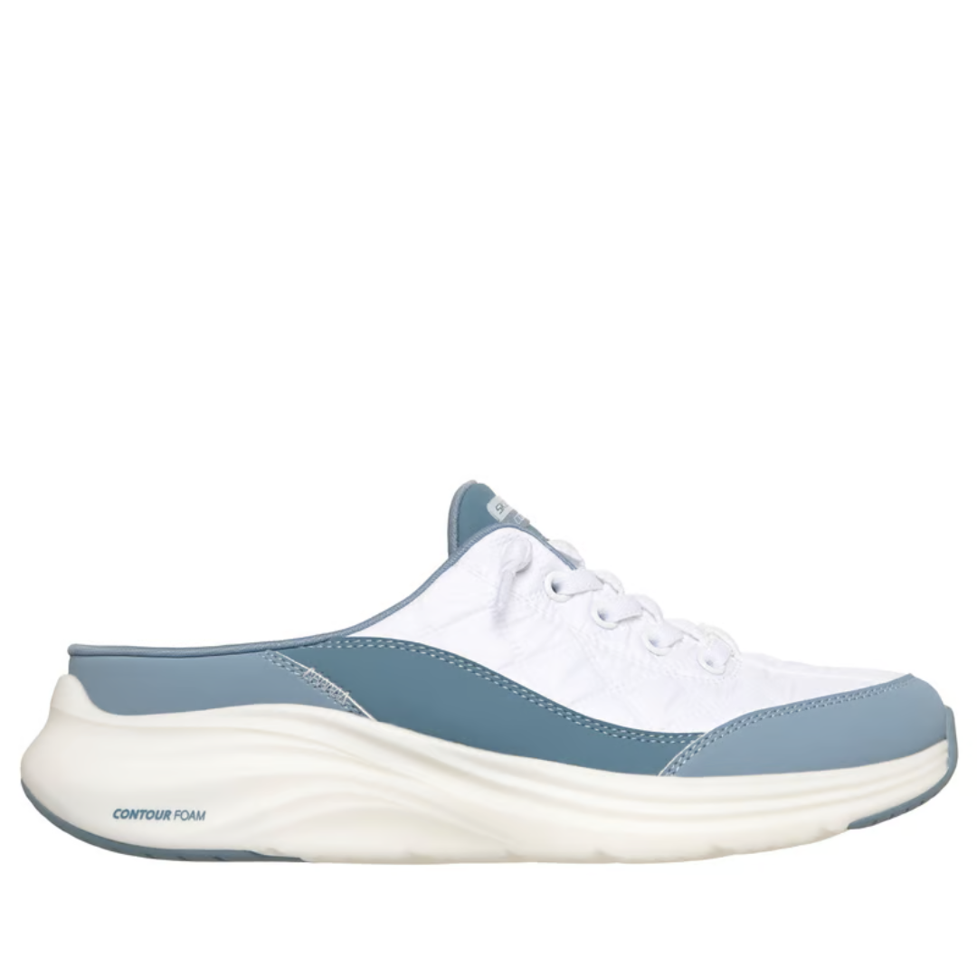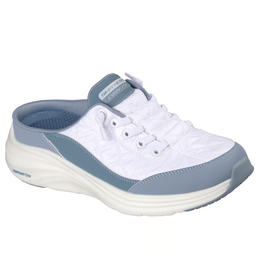 Slip into the innovative style and optimal comfort that characterize the Skechers Contour Foam™ - Cozy Fit™ Sweet Embrace shoe. This breathable, open-back mule-style athletic shoe features a durable leather and quilted mesh upper, stretch laces, a cushioned Contour Foam™ midsole, and our signature Skechers Air-Cooled Memory Foam® insole.