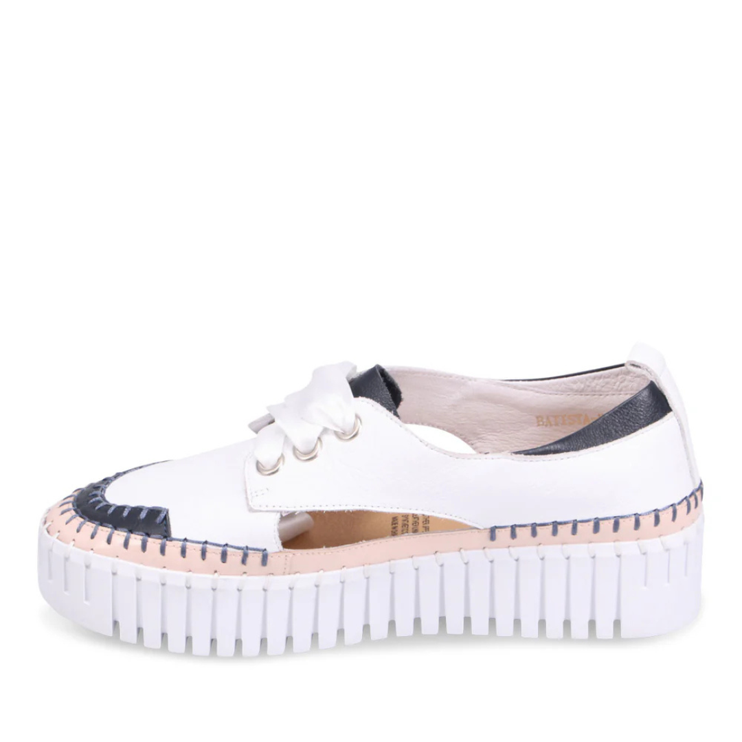 Presented in an elegant white color with a touch of beige and navy blue, this shoe easily coordinates with your outfits while adding an original touch. Designed for those who like to assert their style, the BATISTA combines comfort, elegance, and personality.