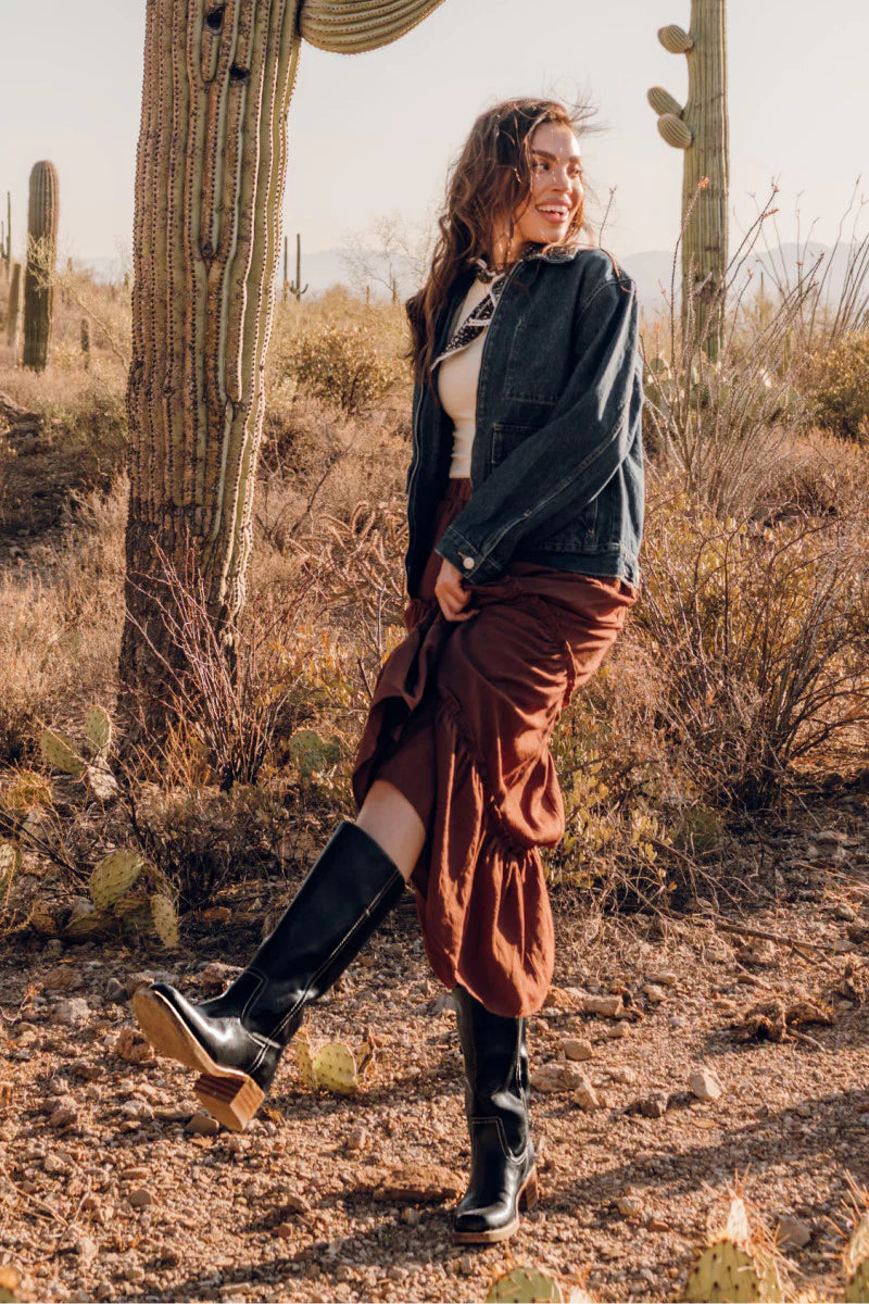 The Miranda 14 icon: the boot you won't be able to live without. Inspired by our most iconic designs, the Miranda 14 high boot is set to become the centerpiece of your wardrobe. Crafted from premium materials, it stands out with its stable block heel and exceptional comfort from the moment you slip it on. Whether you wear them with wide-leg jeans or a boho-style midi dress, they add a touch of casual, refined style to any outfit.