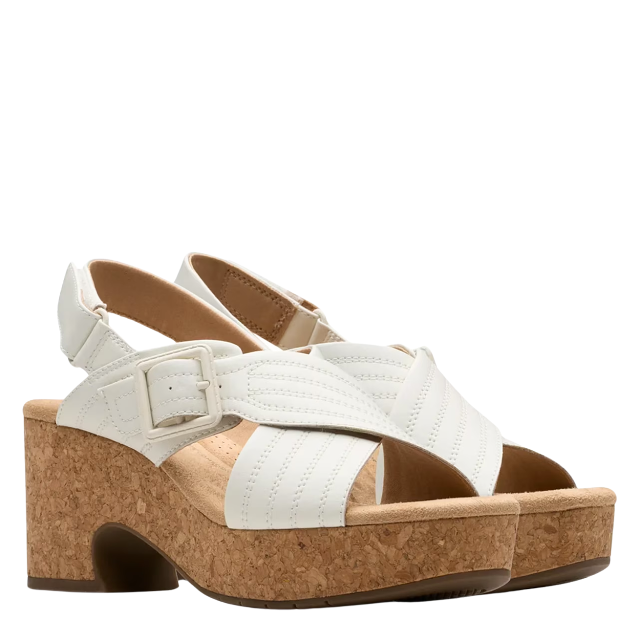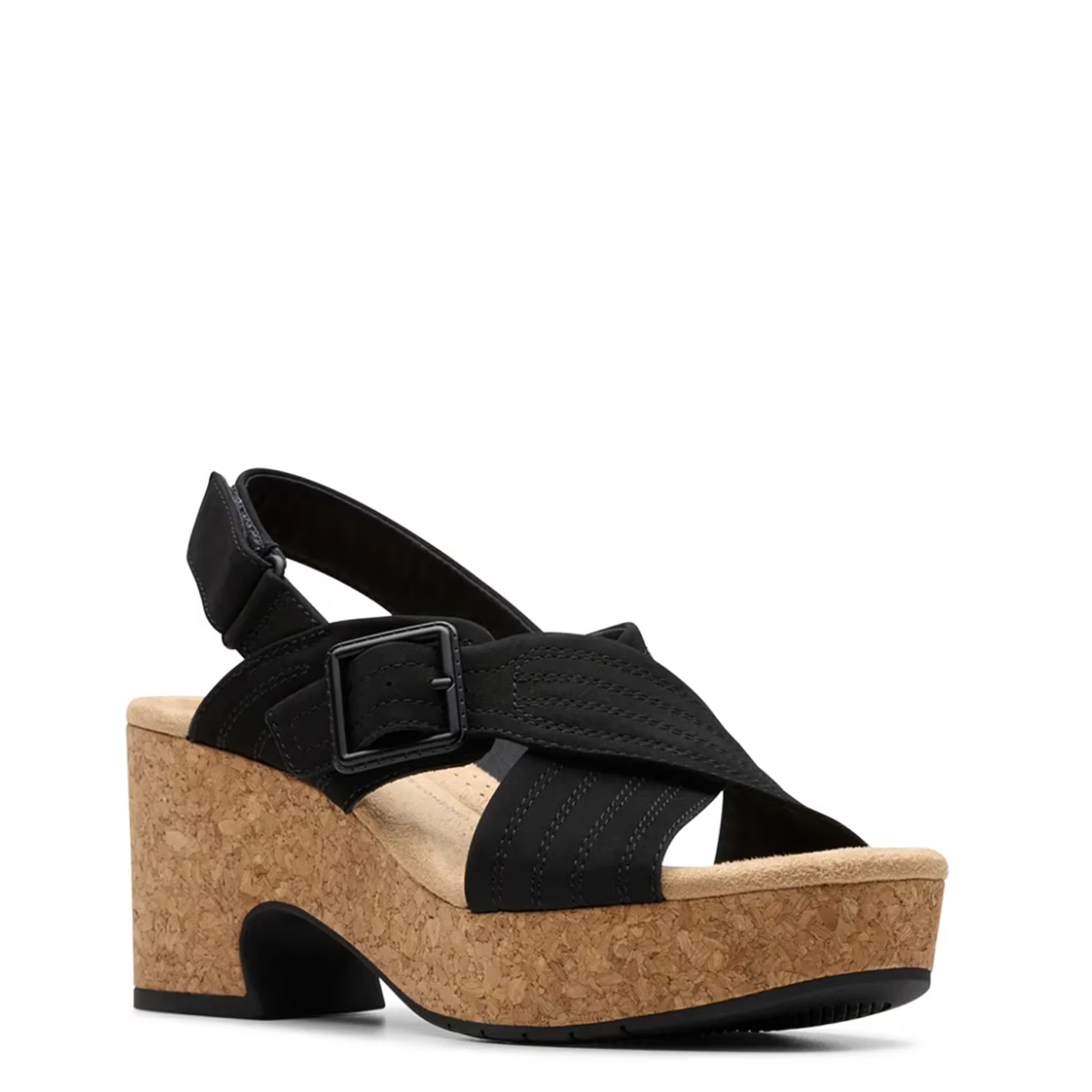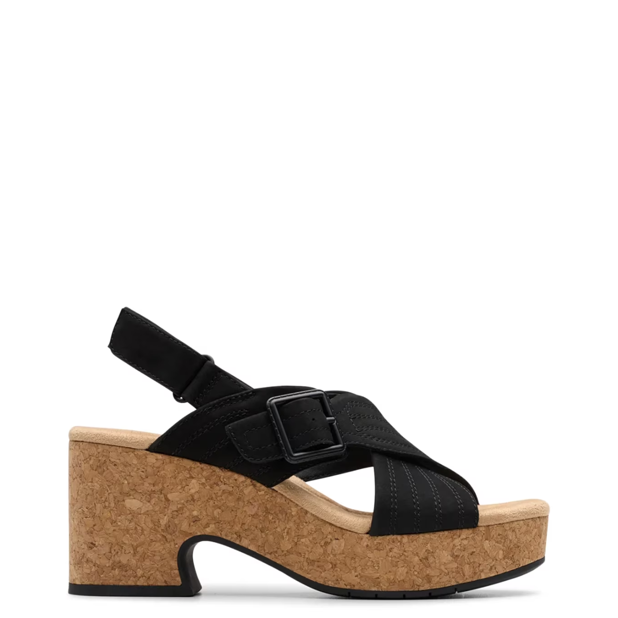Its Ultimate Comfort insole, with targeted heel cushioning, offers optimal all-day comfort. The adjustable back strap with hook-and-loop buckle provides a custom fit, while the dual-density cork wedge sole provides lightweight stability and a sleek silhouette.