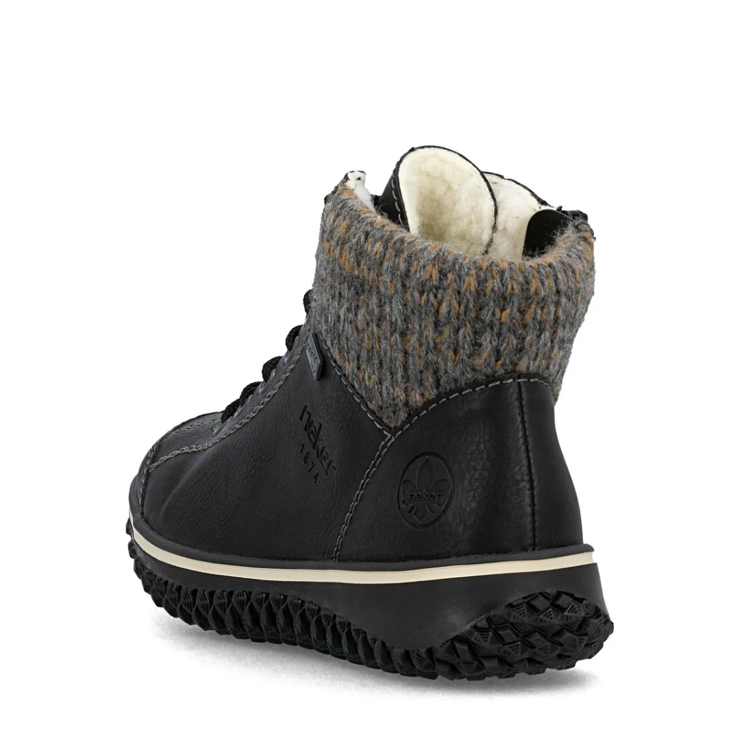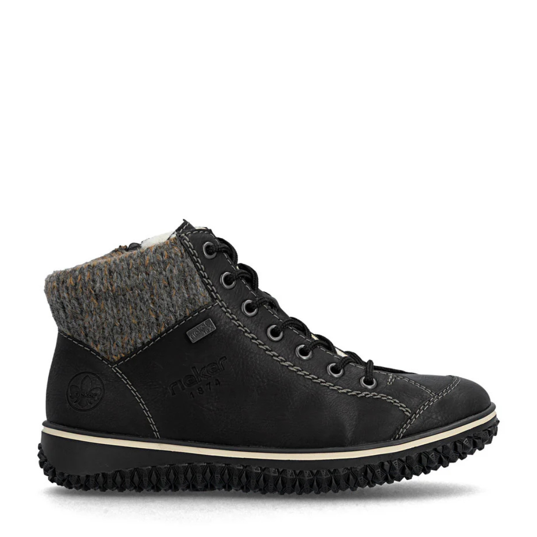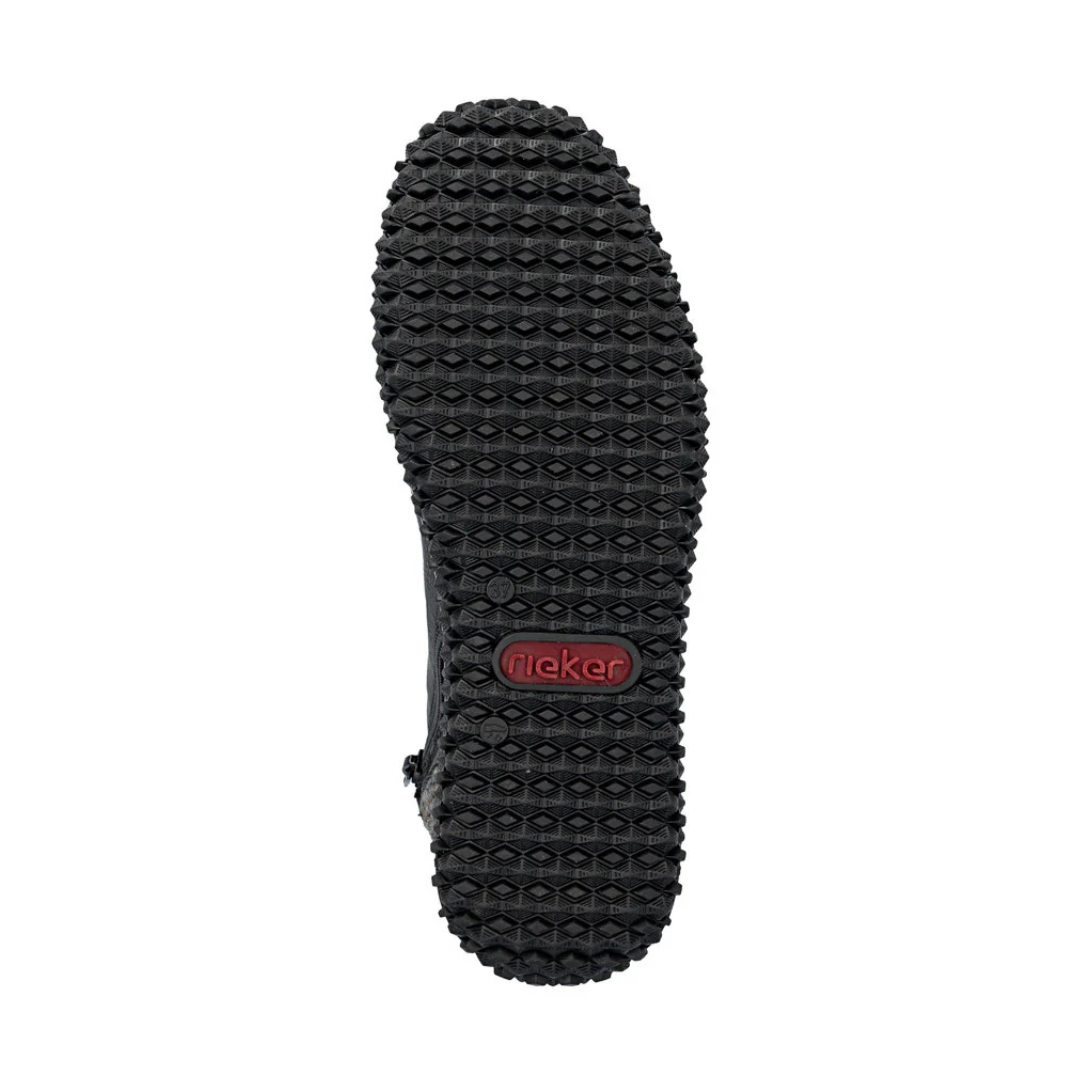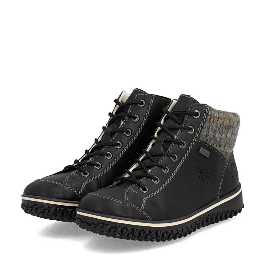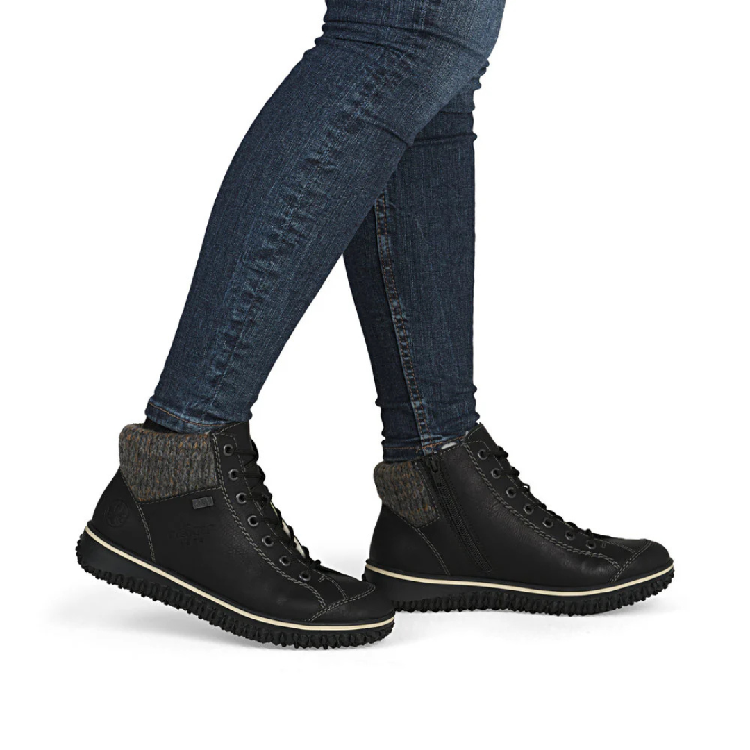 All-in-one shoes! These black lace-up ankle boots from Rieker are not only ultra-trendy, they also protect your feet from the cold. The clever combination of lacing and zipper ensures a perfect fit and optimum support. The mesh collar is a stylish detail. The grippy sole ensures a secure stride with every step. Your feet will stay warm all day long thanks to the cozy lining and dry thanks to RiekerTEX technology. What more could you ask for?