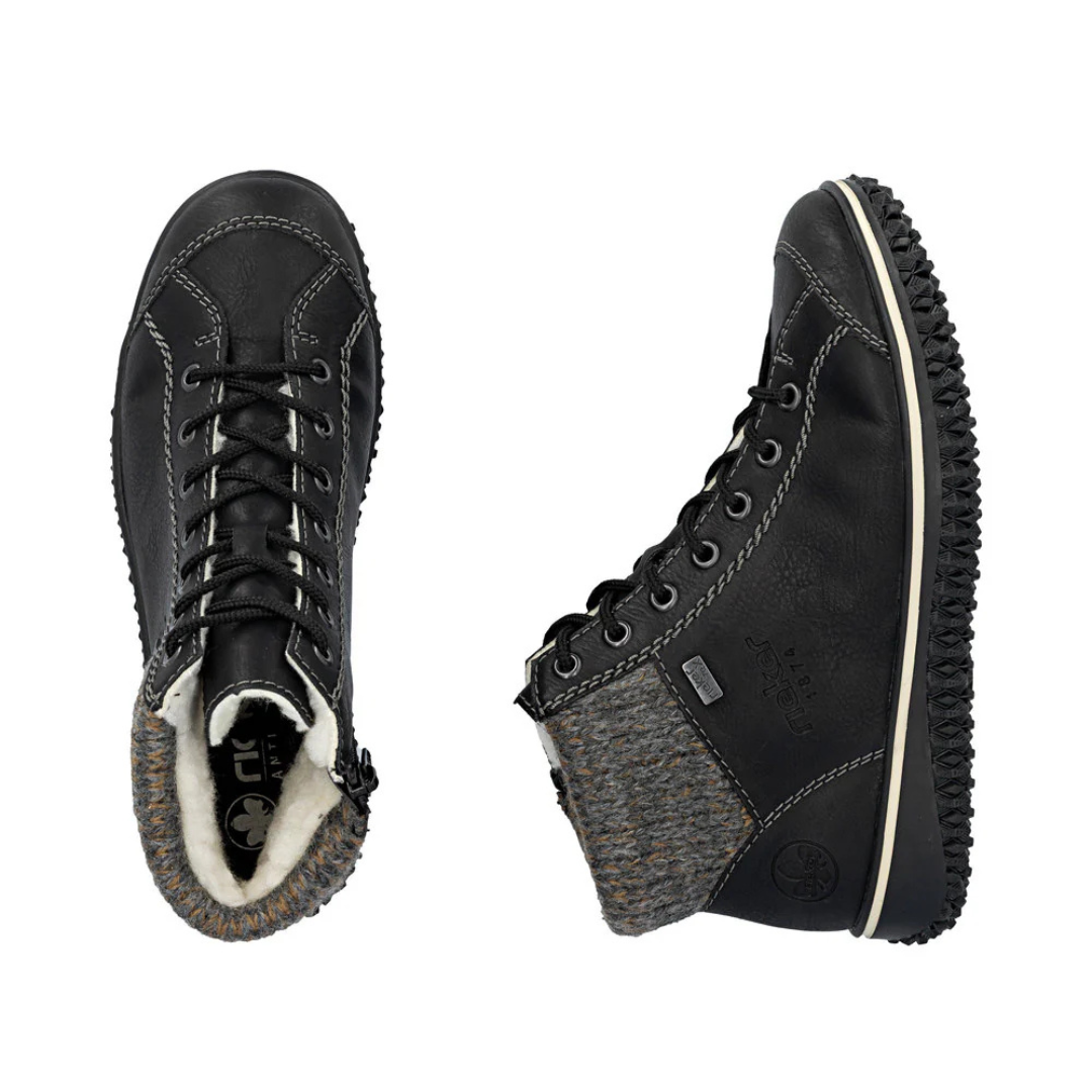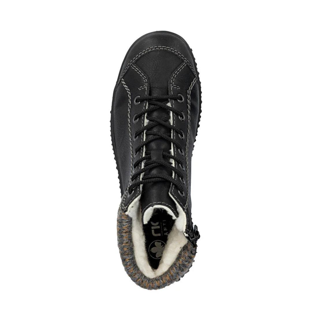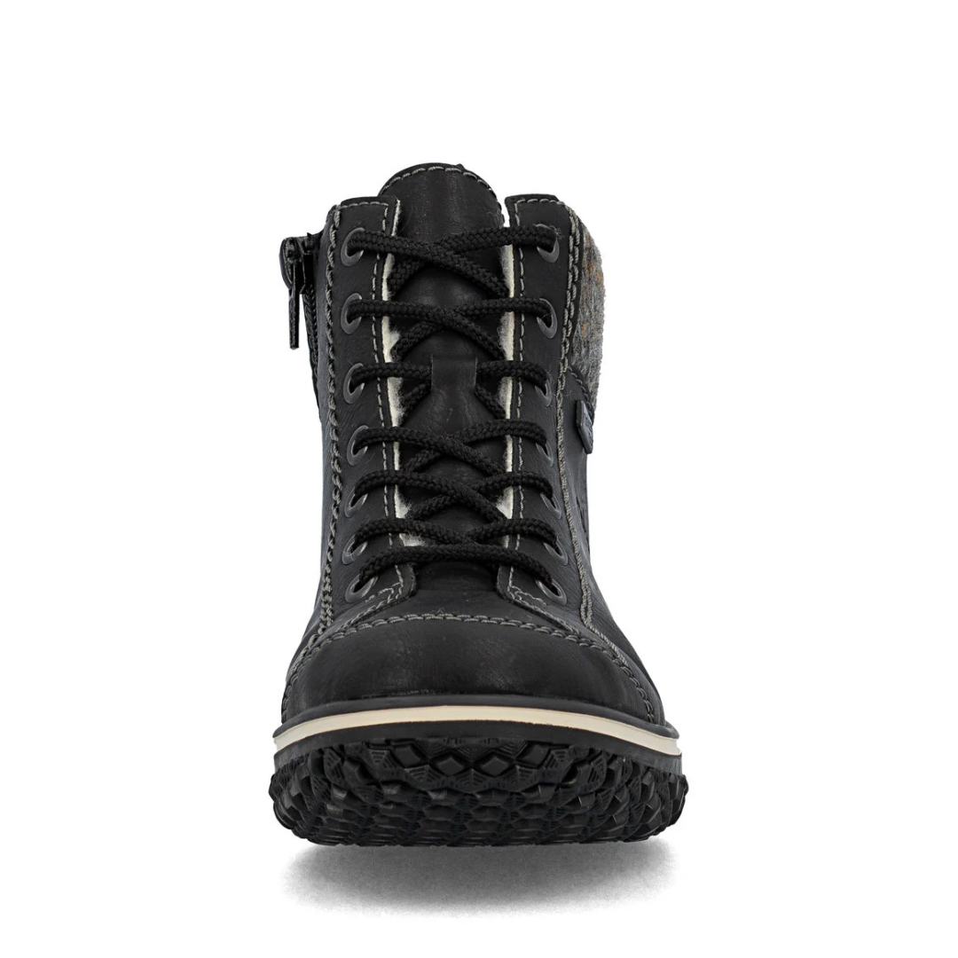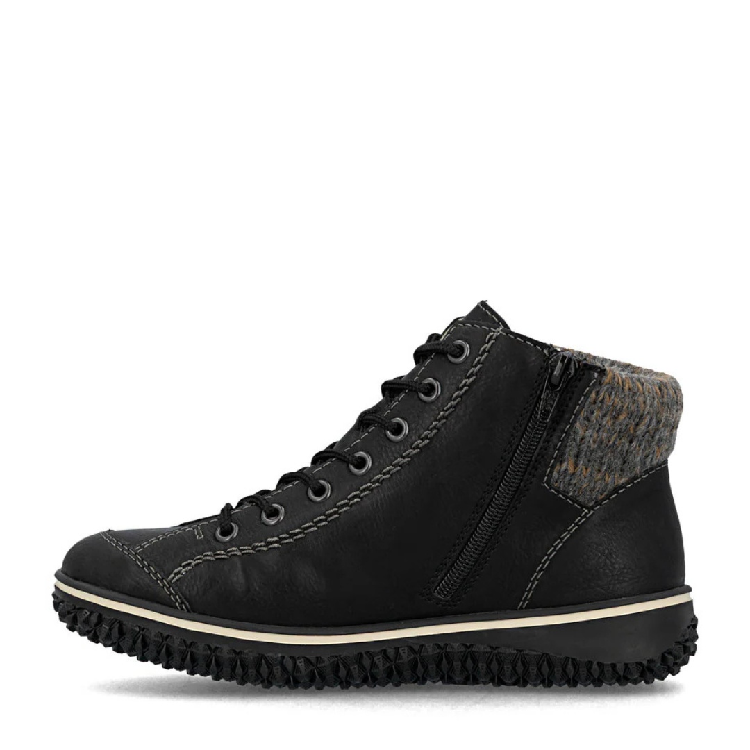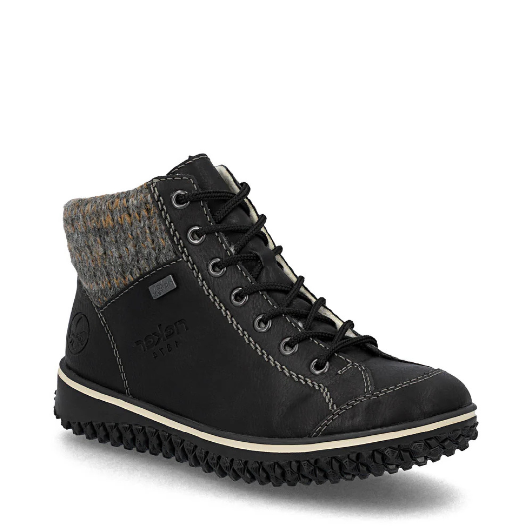 All-in-one shoes! These black lace-up ankle boots from Rieker are not only ultra-trendy, they also protect your feet from the cold. The clever combination of lacing and zipper ensures a perfect fit and optimum support. The mesh collar is a stylish detail. The grippy sole ensures a secure stride with every step. Your feet will stay warm all day long thanks to the cozy lining and dry thanks to RiekerTEX technology. What more could you ask for?